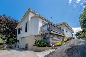 Elevated for all day sun and privacy, the main house has two large bedrooms, two spacious living areas, separate kitchen, superb bathroom, office area, large double garaging with workshop plus additional garaging and a huge storage room under the house.