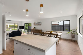 Inside, the open plan living is sunny and spacious with sliding doors leading to the section beyond and a newly fitted kitchen gives the chef in the family everything they need! Good sized bedrooms, separate laundry and a large, carpeted and lined garage with extra storage space complete what is an awesome family home. Outside, the large lawn will give plenty of scope for kids to play and pets to run free!