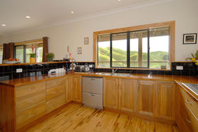 The sweeping driveway starts from the lower building and winds up to a fantastic family home with 6 fully fenced grazing paddocks.